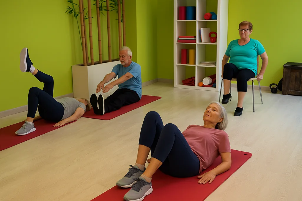En qué consiste: Ejercicios suaves, de bajo impacto, centrados en mantener la movilidad, el equilibrio y la fuerza funcional para las actividades del día a día.